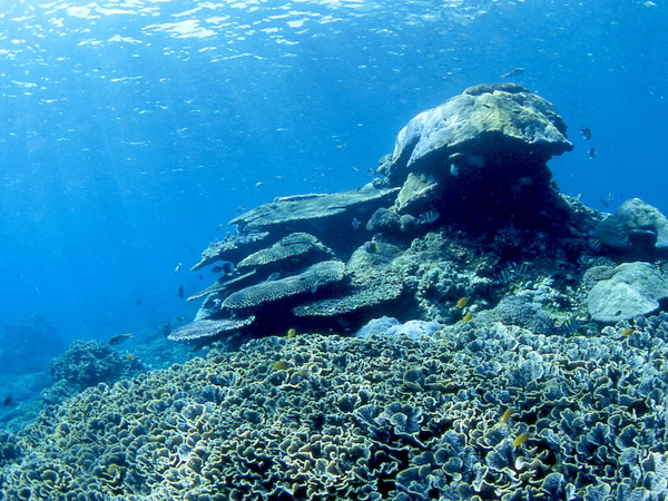 | このエリアの魚たち♪ | ギンガメアジの群れや、チョウチョウウオ各種、ハナダイなどなどの多くのトロピカルな魚と遭遇できるエリアです。 |