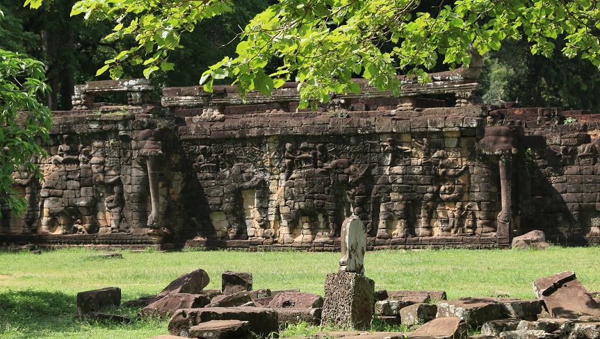 アンコールワット同様に、世界遺産として登録されているアンコールトム遺跡。仏教とヒンドゥー教が融合された城塞都市の中心寺院バイヨン遺跡では、当時の人々の生活の様子を描いた貴重な壁画をみることができます。