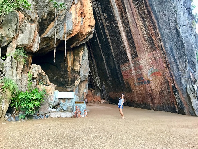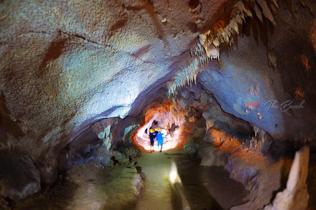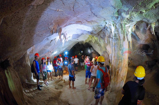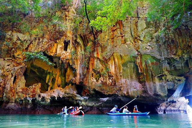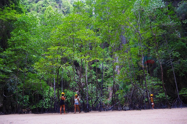 石灰岩の洞窟探索をします。洞窟を抜けるとマングローブが
