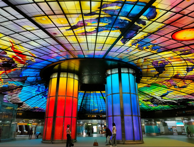 ◎美麗島駅構内のステンドグラス鑑賞 世界で最も美しい地下鉄駅の一つとして評価されている美麗島駅。その構内にある「光之穹頂(光のドーム)」は世界最大級のステンドグラスアート作品として知られています♪♪ |