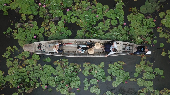蓮の池があるマーケットへご案内 小船乗船 (約30分) その後自由時間(約30分) |