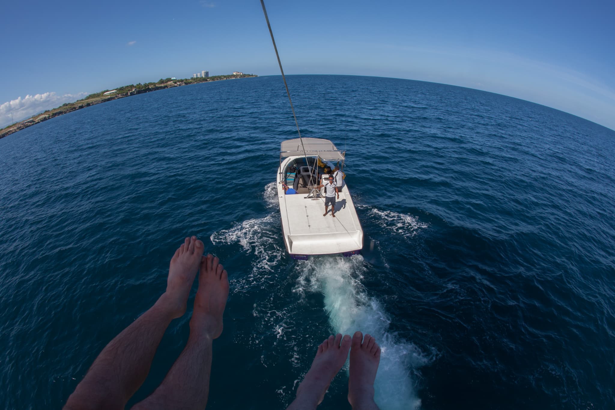 大人気のパラセーリングでセブ島の美しい海を空中から眺めませんか♪高い所が苦手でも皆で乗れば怖くない!学生時代の思い出にセブ島でしかできない体験をどうぞ!あっと言う間に空中へ飛び立った後は空と海の堺が分からない程の青い絶景に見とれてしまいます。