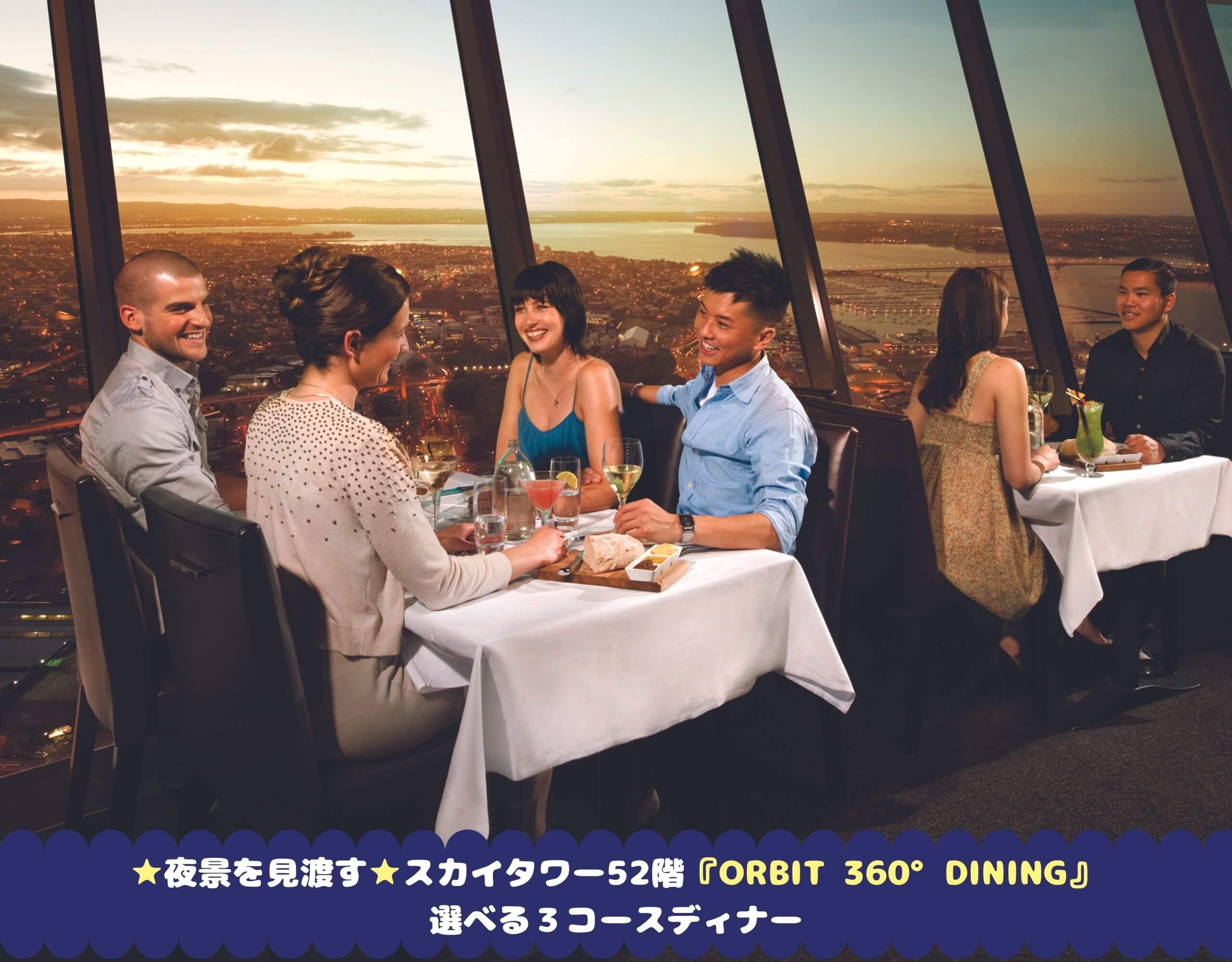 オークランドのランドマークであるスカイタワーはオークランド市内を360度見渡す展望台があります。このスカイタワーの52階に位置する『ORBIT 360° DINING』でのお食事は、ご家族やご友人、カップルでの特別な日のディナーや、いつもと違った場所・雰囲気でのディナーにぴったりの場所です。