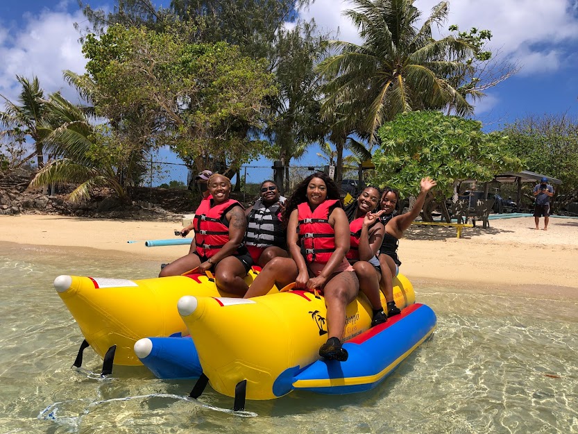 ジェットスキーとバナナボートを催行するアプラ湾へ移動 簡単なご説明の後に、ジェットスキーとバナナボートをお楽しみください。 ジェットスキーは2人乗り、バナナボートはMax6名乗りとなります |