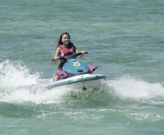 ジェットスキーを催行するのアプラ湾へ移動 簡単なご説明の後に、ジェットスキーをお楽しみください。 ジェットスキーは2名乗りとなります |