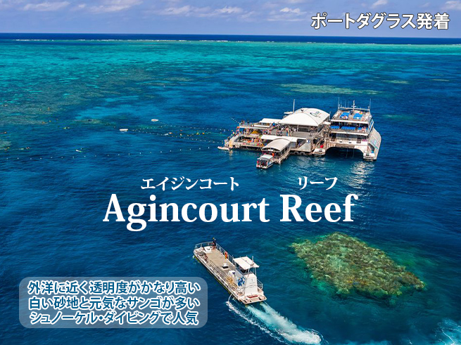 ケアンズより車で1時間程北にあるポートダグラス港からは、快適なクイックシルバー高速船に乗り、72㎞沖合にあるエイジンコートの「ポンツーン(浮島)」へ向かいます🚢