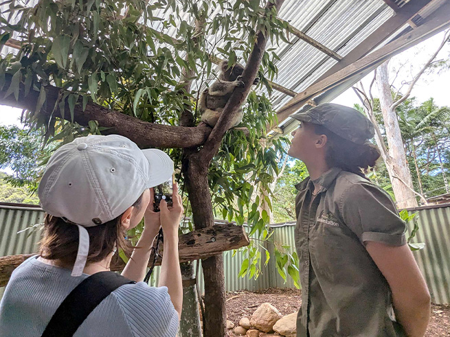 オプション②ミニ動物園(コアラ、カンガルー、クロコダイル、タスマニアデビル、ヒクイドリ、ディンゴ等) ミニ動物園では、たくさんのオーストラリア固有の動物たちに出会うことができます。 カンガルーやワラビーに餌をあげるなど、動物たちとの触れ合いも嬉しいポイントです♪ |