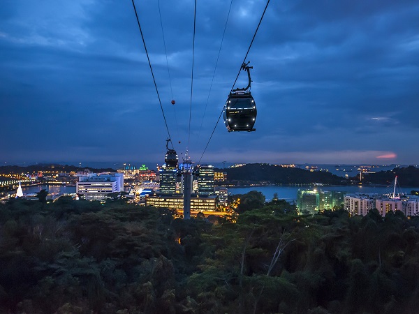 マウントフェーバーの頂付近とセントーサ島をつなぐケーブルカーは、辺りが暗くなるにつれ、まるで宝石の粒が夜空に連なっているようにみえます。そこからはおもちゃ箱のようなセントーサ島を眼下に収めることができます。大きな窓に囲まれたケーブルカーのキャビンから見える大パノラマを贅沢に独り占め。美しい夕日、ユニークなデザインのビルやマウント・フェーバーを覆う南国の木々たちもロマンチックなディナーに彩りをそえます。