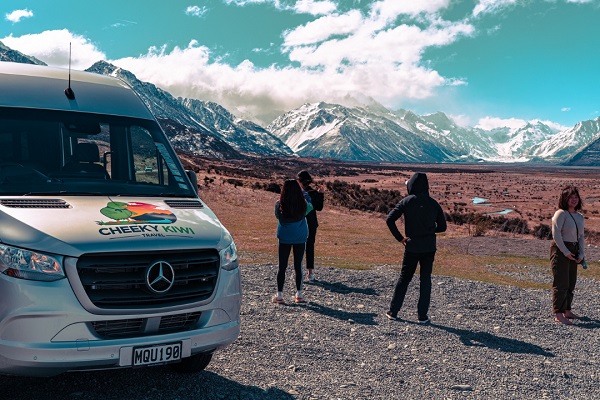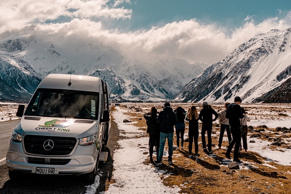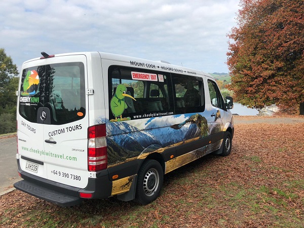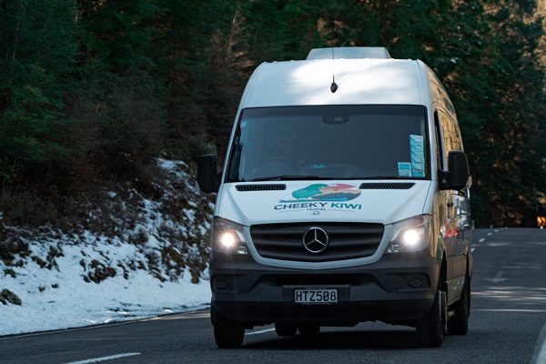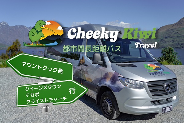 Cheeky Kiwi Mt Cook Transportは、ニュージーランド南島の都市、クライストチャーチ、テカポ、マウントクック、クイーンズタウンをつなぐ混載タイプの長距離バスでございます。