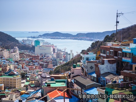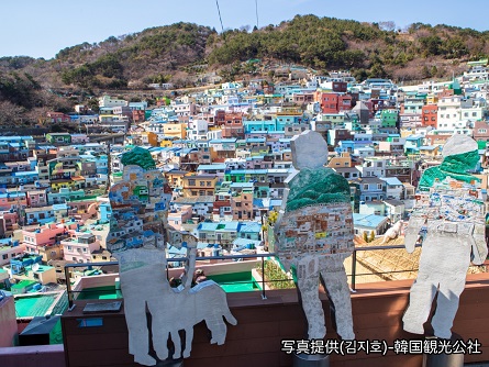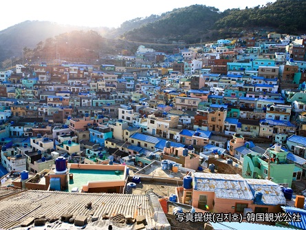 「釜山のマチュピチュ」と呼ばれる甘川文化村でスタンプラリー散策を楽しんだ後、釜山を代表する食べ物「テジクッパ」をどうぞ!