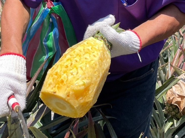 その後は「パイナップル農園」へGO!地元の農家さんから美味しい切り方や食べ方を伝授してもらいながら、よそではなかなか体験できない「パイナップル収穫」や「パイナップルジャム作り」をぜひお楽しみください。お昼は農園内でパイナップルを使った料理もご堪能いただけます♪