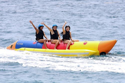 バナナボート マリンスポーツの定番、バナナボートを満喫!ゴムボートに乗って海の上をパワーボートに引かれながら疾走します。 振り落とされないようにするためにバランス力も必要です。 子供から大人まで楽しめますので、少人数でも大人数でもOKです♪ 《注意》 ※妊娠中、アルコール摂取のお客様のご参加はご遠慮いただいております。 ※天候により催行中止となる場合がございます。 |
