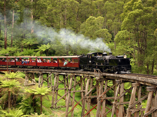 【日本語ガイド】パッフィングビリー蒸気機関車とダンデノン丘陵ツアー 少人数制 <MR JOHN TOURS>