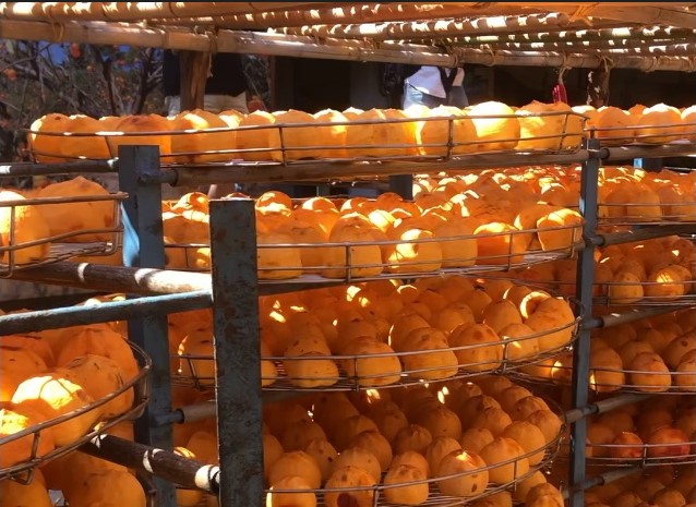 柿の里と呼ばれる街「新埔」、期間限定の人気フォトスポットとしても有名で、毎年の秋から初冬にかけて、辺り一面に広がるオレンジ色の柿は、この三ヵ月ちょっとの間でしか見られない「干し柿(柿餅)」製造風景。