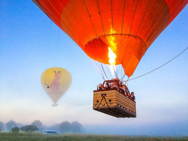 6:00頃 世界でも有名な飛行地マリーバに到着! 目の前に広がっていくユニークデザイン気球をご堪能ください!その姿はまさに圧巻です!離陸準備が完了したら世界最大級のバスケットに搭乗しテイクオフ!日本では満喫できない広大な大陸をパノラマビューにてお楽しみください。気球飛行は空中散歩です。上空からはオーストラリアの野生動物をご覧いただけます。カンガルーも90%以上の確立でご覧いただくことができます。 離陸する場所は天候や風向きにより毎日異なります。