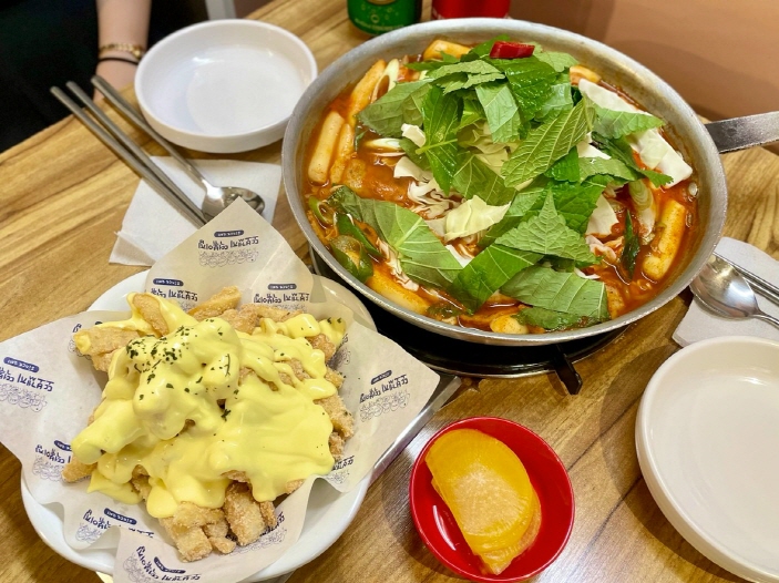 ボリュームたっぷり!トッポッキ+バターガーリックフライドポテト+チーズチャーハンの昼食