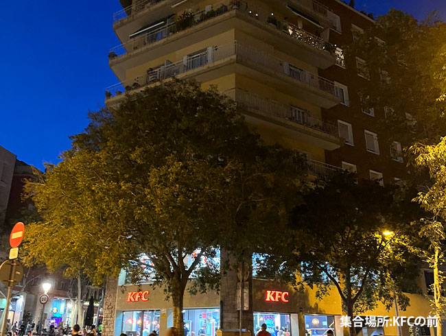 サグラダ・ファミリア生誕の門側 ケンタッキー・フライドチキン(KFC)の前 集合 ※サグラダ・ファミリア夜景ツアープランにご参加者がいる場合 |