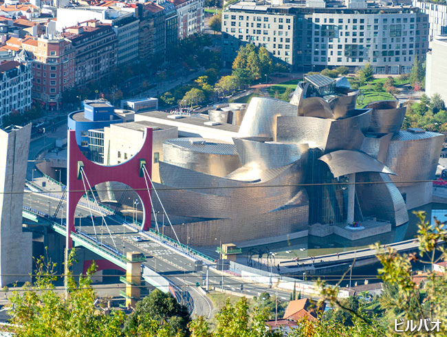 奇抜なデザインで有名なグッゲンハイム美術館(外観)、旧市街にご案内します。