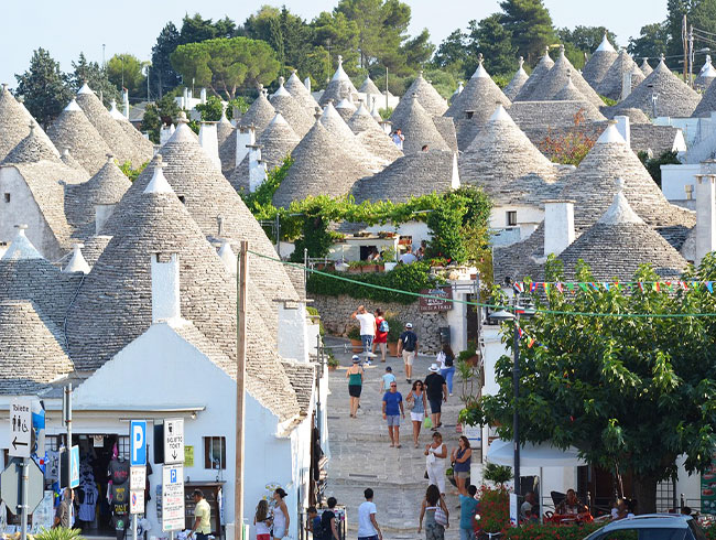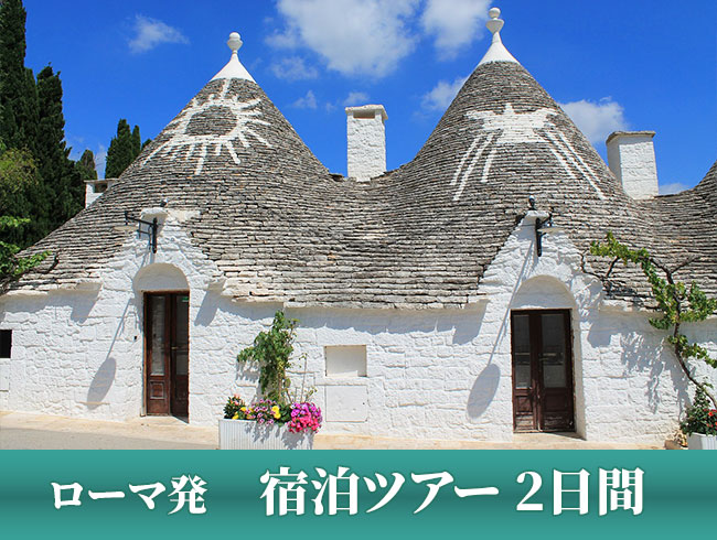 ブーツの形をしたイタリアのかかとに位置するプーリア州。この南イタリアにあるとんがり屋根で有名なアルベロベッロとサッシと呼ばれる洞窟住居群で有名なマテーラへ行ってみませんか。1日目は日本語公認ガイドがアルベロベッロの見どころをご案内します。トゥルッリと呼ばれる白い三角の屋根が連なるおとぎ話の国のような景色が広がります。ご宿泊は可愛らしいトゥルッリホテルをご用意しました。2日目は専用車にてあのスパイ映画が撮影されたことで有名なマテーラを訪れます。南イタリアの二つの世界遺産を訪れることができる欲張りツアーです。