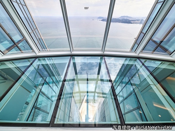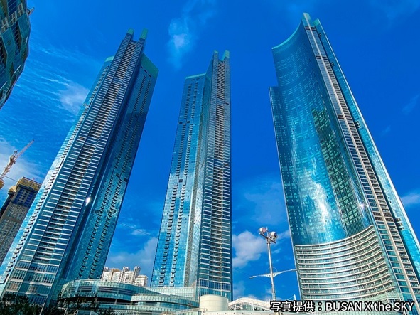 海雲台地区の人気スポットへ歩いて見ましょう!韓国で2番目に高いビル海雲台LCTランドマークタワーに位置している展望台、BUSAN X the SKY!(入場チケット付き)