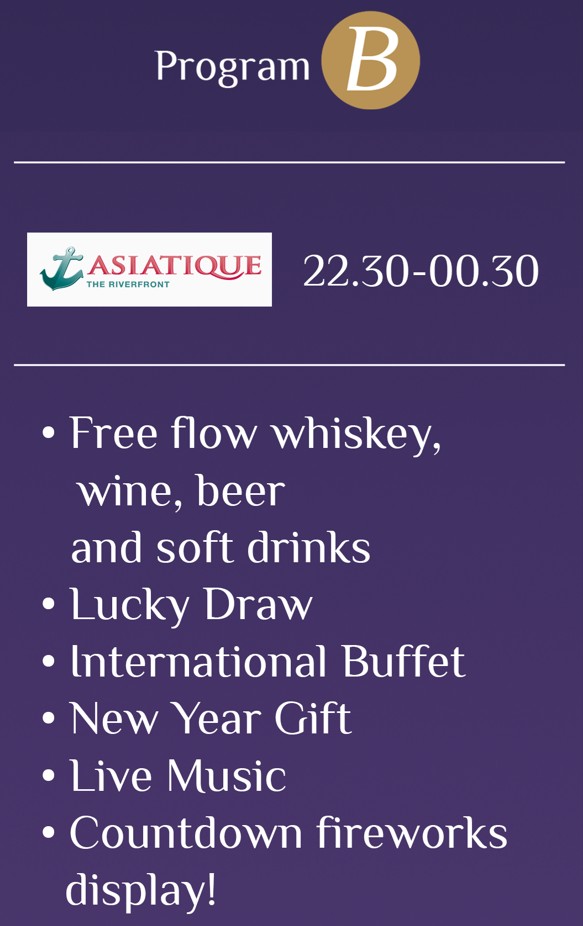 販売終了【12月31日限定】ニューイヤーズ・イブ・ディナークルーズ(チャオプラヤ・プリンセス号 @アジアティーク発)