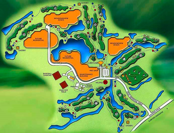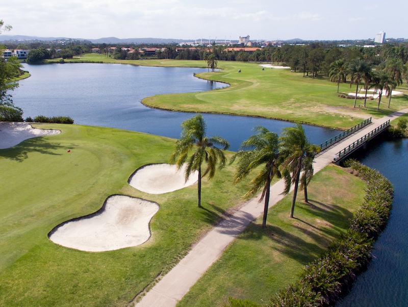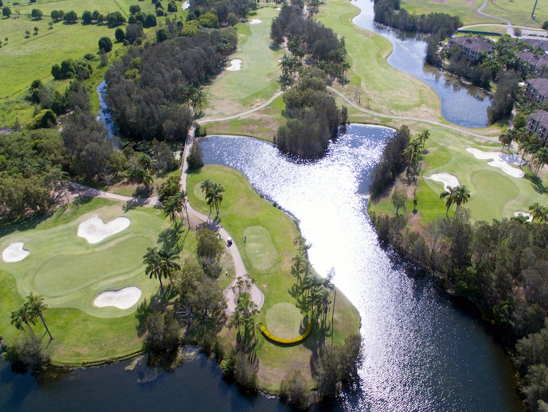 オーストラリアのスーパーレジェンド「グラハム・マーシュ」デザインのコース。コース内には、何千ものヤシの木が植えられ、トロピカルな雰囲気をたっぷり感じるコースです。全ホールの2/3以上を池が占めているのでスリリングなラウンドを楽しめます。コースレイアウトは、フロントティから回っても比較的に距離があり、左右にくねってるドッグレッグコースが多いのでティーショットのポジションがとても大切になってきます。グリーンは、高低差があるアンジュレーションで手強いかも?!トリッキーなコースではないので、初級者から楽しめるコースです。