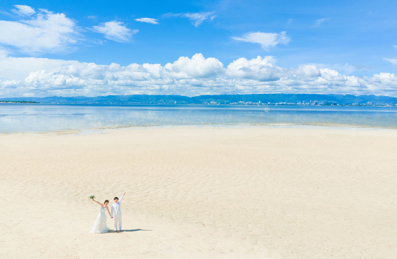 フォトウェディングの撮影開始♪ マクタンニュータウンビーチ(120 分200 カット) (嬉しいランチ付きです♪) ※現地の状況により、撮影がパシフィックリゾートで行われる場合があります。その際はランチは付きません。 |