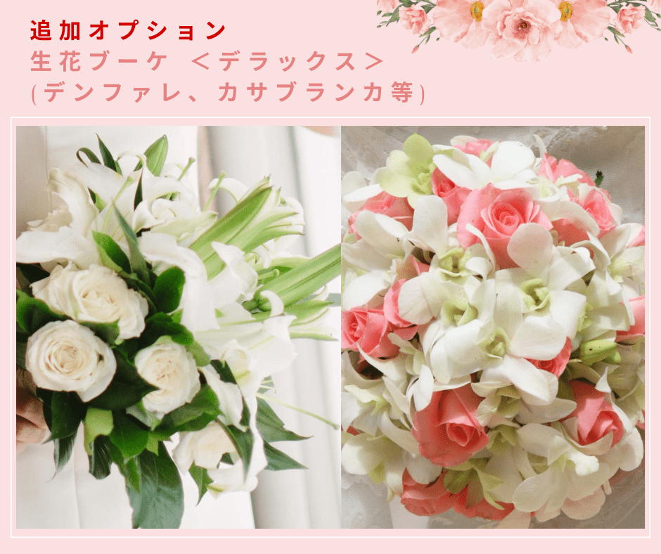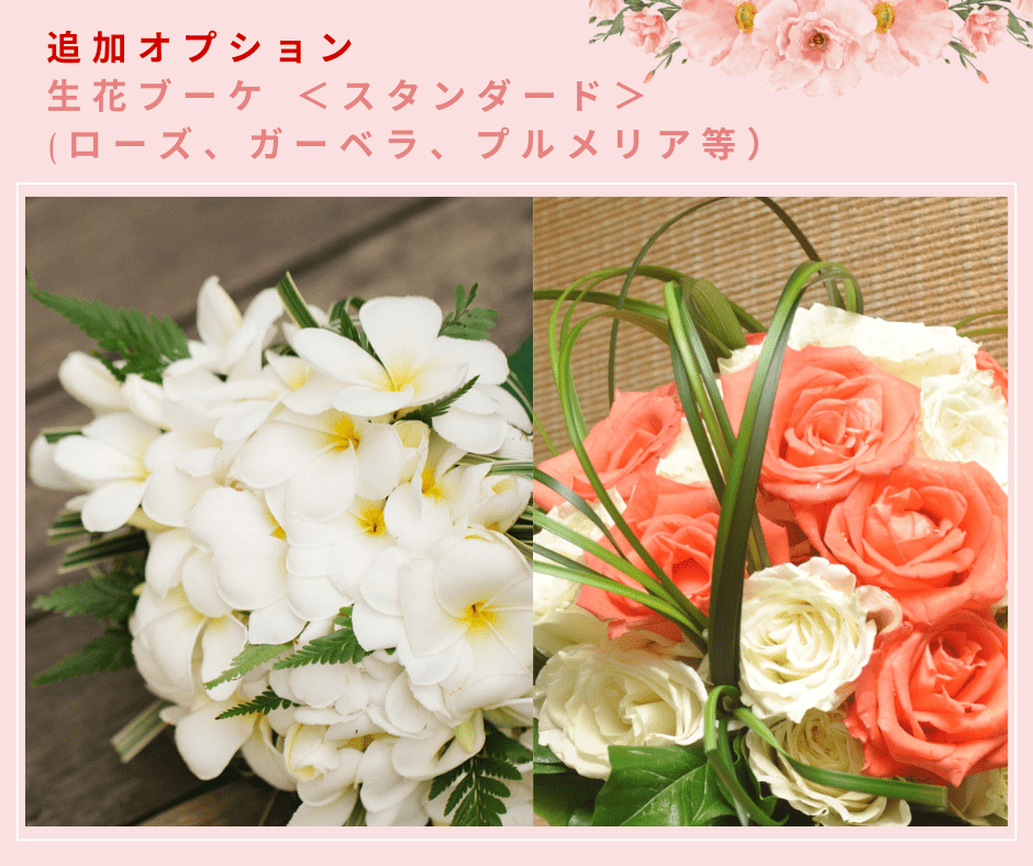 | 料金に含まれるサービス | 約120分の撮影・200カット納品/ヘアメイク・レンタル衣装(ドレス&小物&タキシード)/撮影地入場許可費用/ホテル往復送迎/日本語コーディネーター ※靴は料金に含まれていますが、可能であれば履きなれたものをご持参ください。なお、靴やベール等の小物は事前に指定できず現地でお選びいただきます。 ※現地の状況により、撮影がパシフィックリゾートで行われる場合があります。その際はランチは付きません。 |
