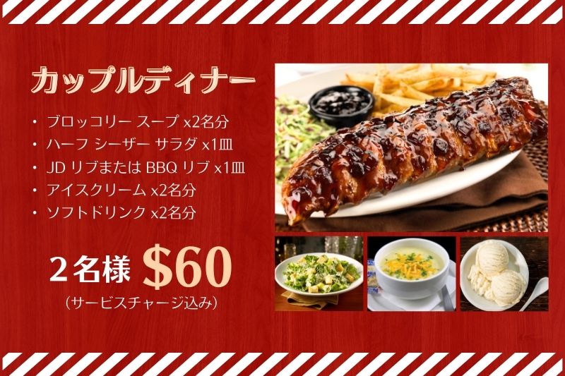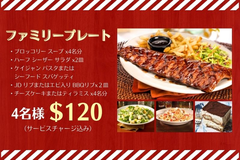 カップルデイナーとファミリーデイナープレートをご用意しています。