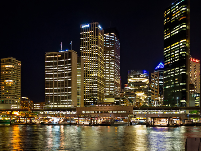 ミルソンズポイントからフェリーに乗船、サーキュラーキーまたはタウンホール駅にて解散 フェリーからシドニーの夜景を堪能いただきながらサーキュラーキーまで移動 |