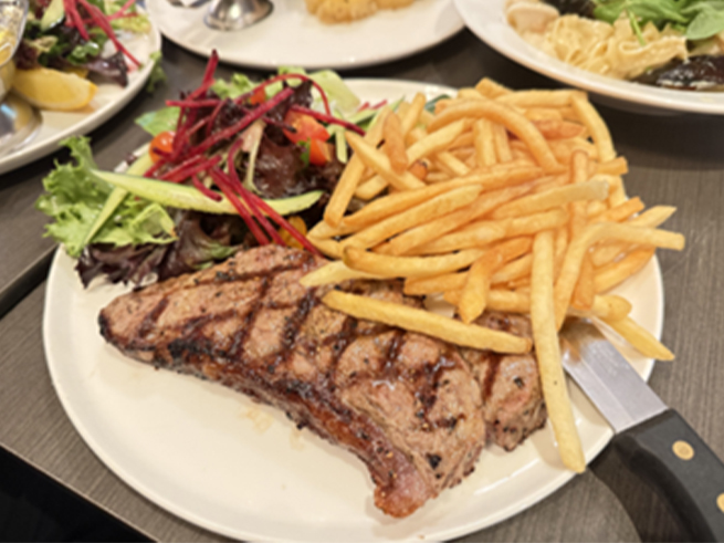 メニュー例:ステーキ&ポテトフライ、フィッシュアンドチップス、パスタ ... etc