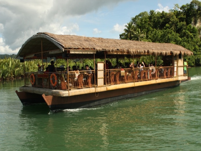 昼食、ロボク川クルーズ(乗船) フィリピンの屋形船で景色を楽しみながら川を下ります。 船上ではお待ちかねの昼食(ビュッフェスタイルの船上ランチ)をご堪能下さい! |