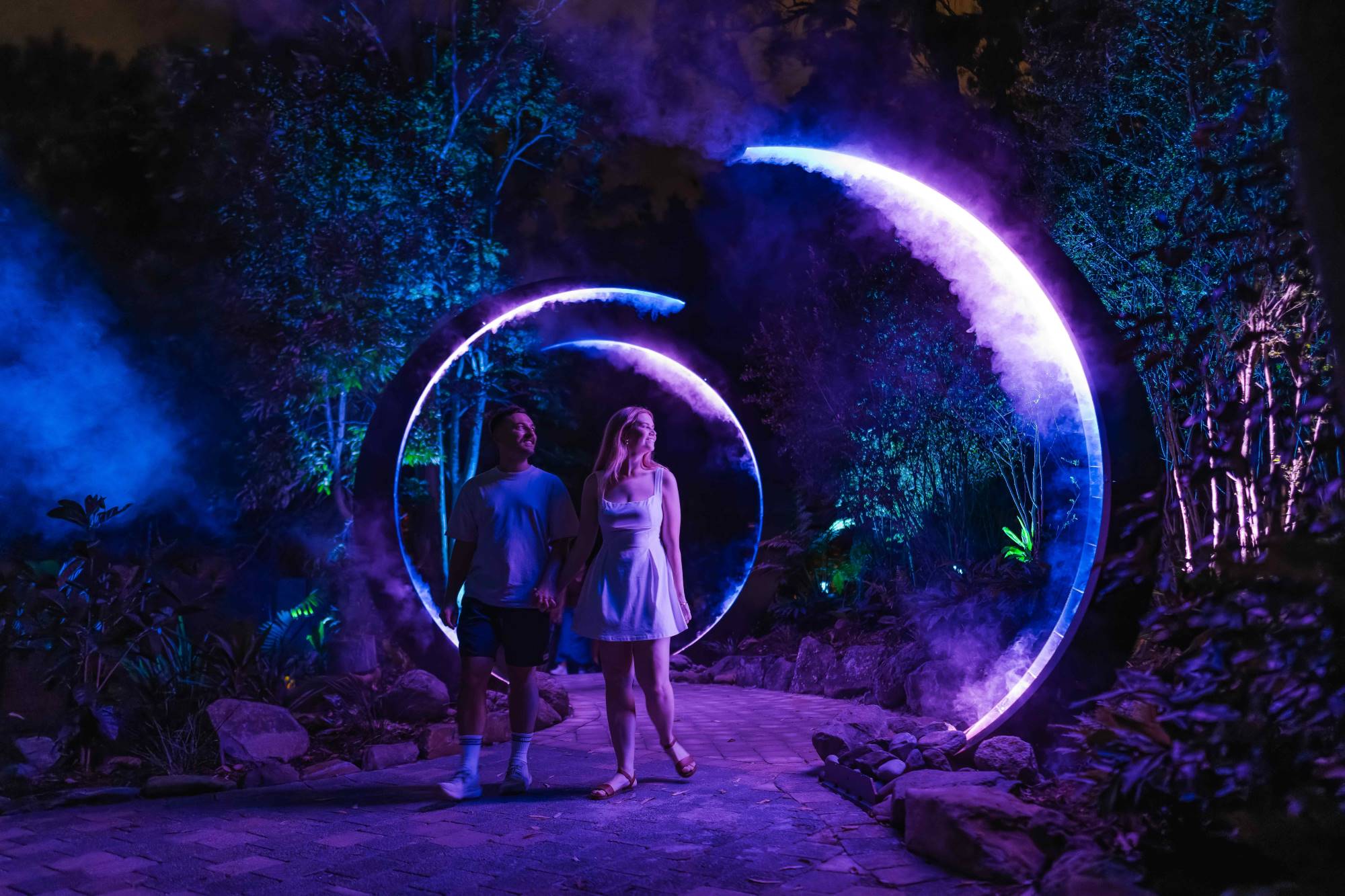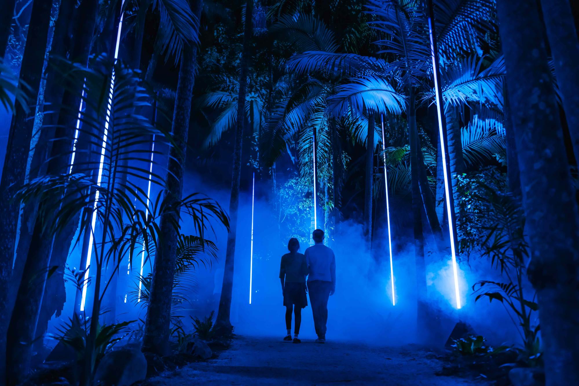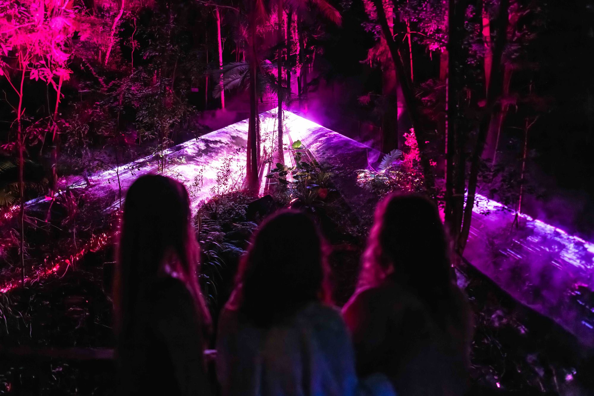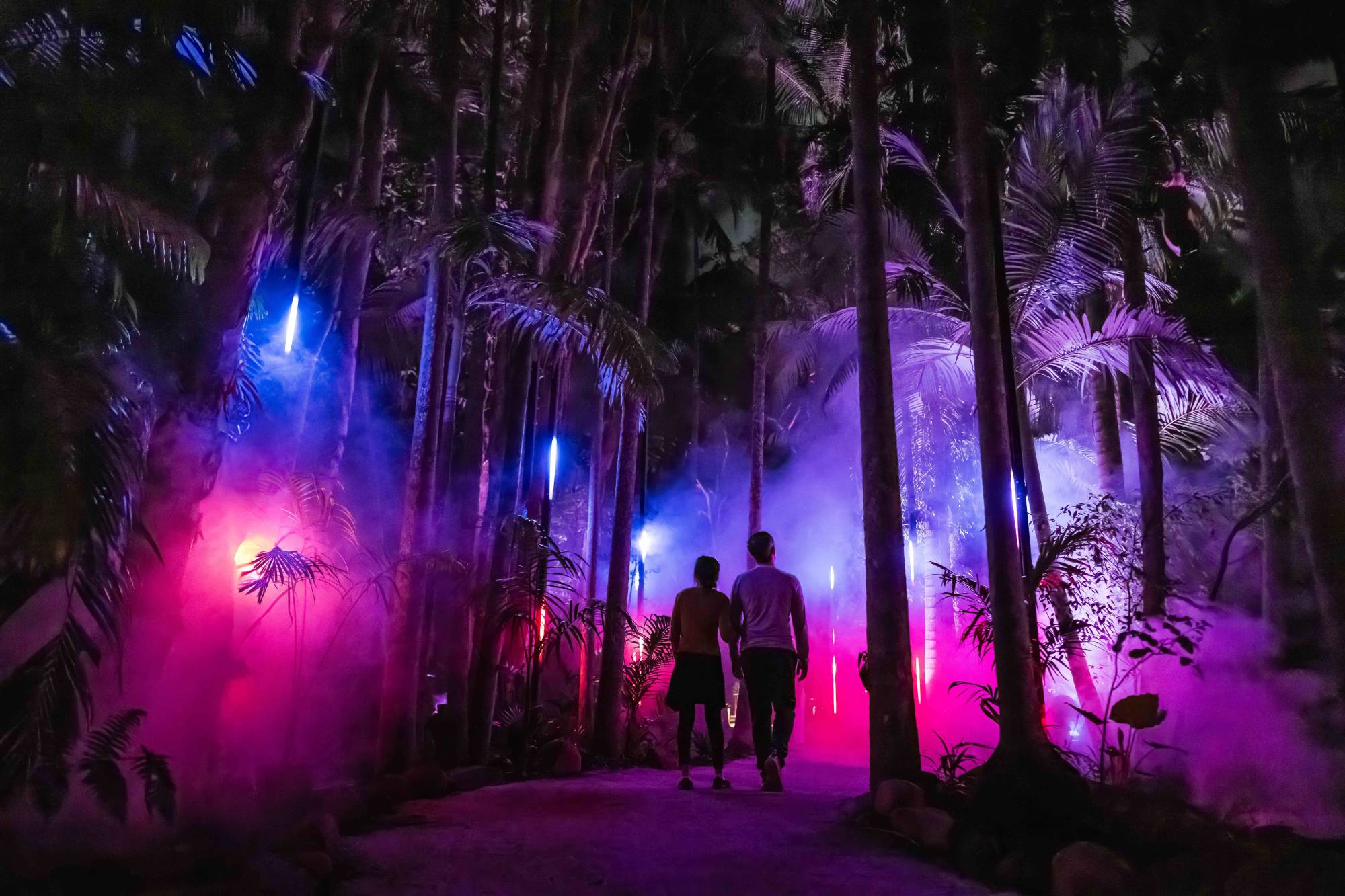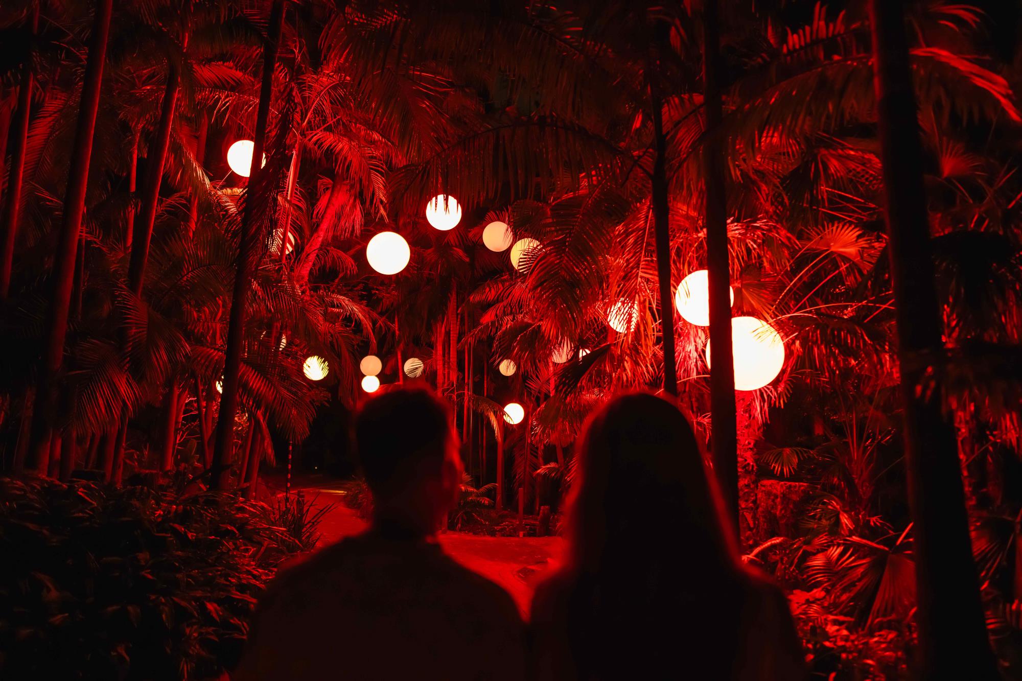 A:幻想的な光と音の演出が織りなす没入型ナイトウォーク体験で、夜の森が美しいイルミネーションに包まれます。