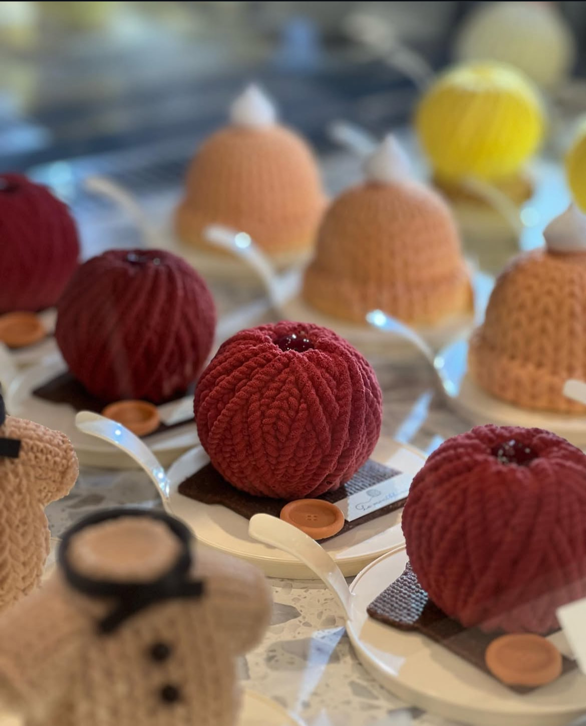 この店のシグネチャー毛糸ケーキを楽しめます!