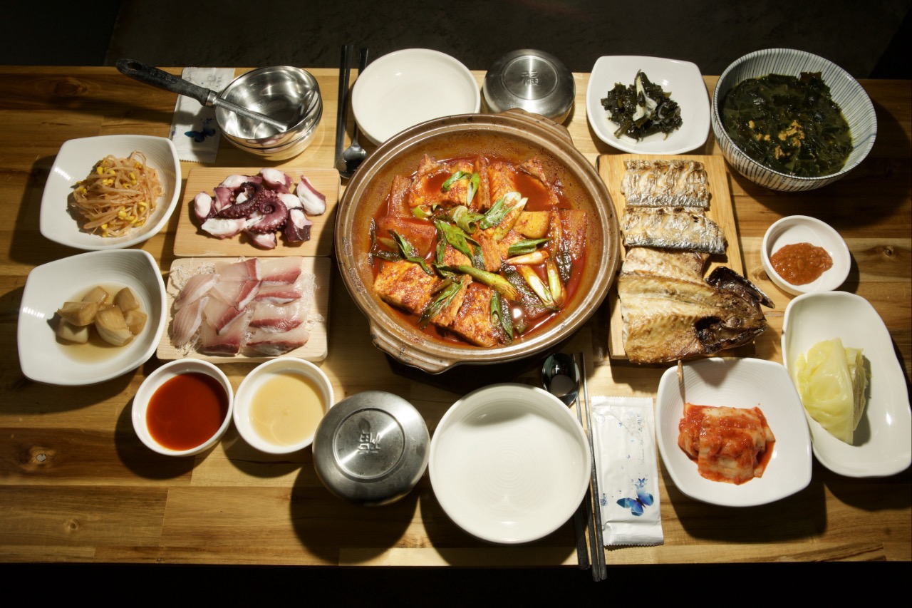 | 11:00-11:50 | 昼食:済州海女さん定食(サバの煮付け+ウニ入りワカメスープ+太刀魚焼き+サバ焼き+タコ刺身+刺身など) |