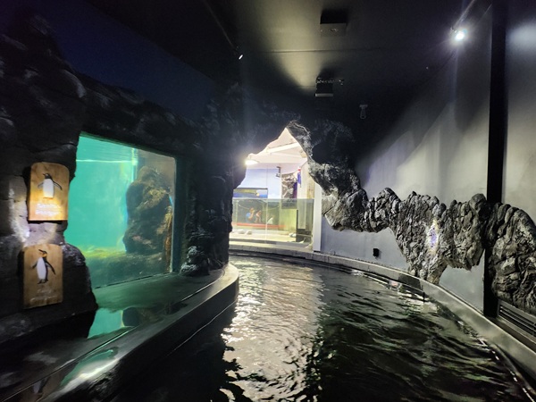 色鮮やかな熱帯魚や巨大エイが泳ぐ透明トンネル、水辺を優雅に進むウミガメなど、迫力ある展示が満載。