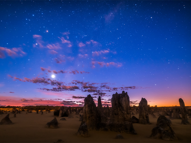 西オーストラリアの絶景スポット「ピナクルズ砂漠」で壮大なサンセットと満天の星空を楽しむ人気ツアー!