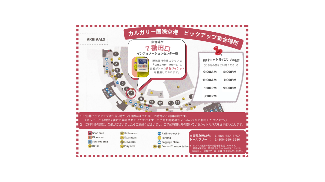 カルガリー空港 7番出口 インフォメーションセンター付近にご集合ください。