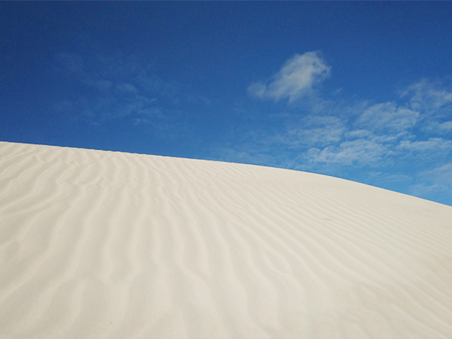 砂丘見学 / ナンバン国立公園内散策 見渡す限りの真っ白な砂丘の世界へご案内します。「オーストラリアの雪」と呼ばれるほど白い砂と青い空のコントラストがフォトジェニック! |