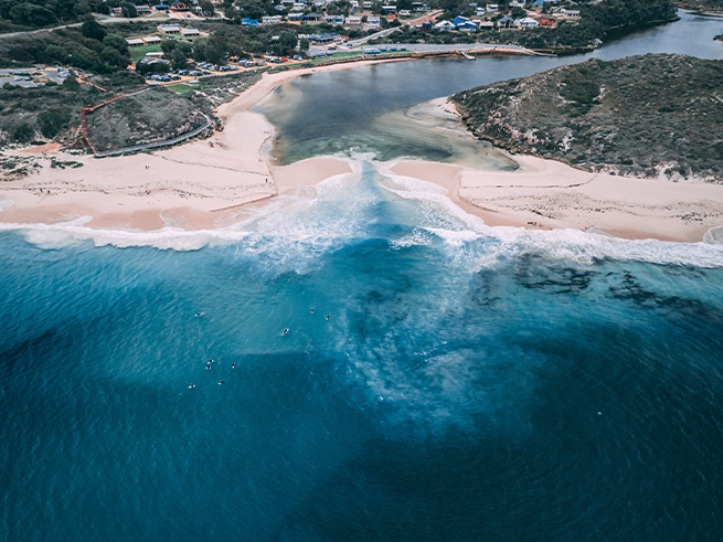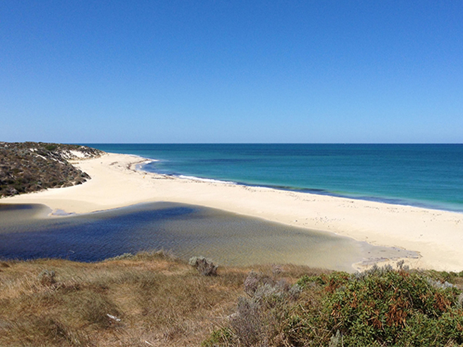 インド洋入り江の高台にて見学 / モールリバー / トイレ休憩 砂浜を挟んで両側に川とインド洋がある、不思議な光景をご覧いただけます。インド洋入り江の高台からコーラルコーストの絶景を写真に収めましょう。 |