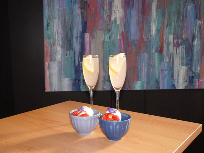 有名デザートバーにて、カクテル、シャーベットとフルーツ |