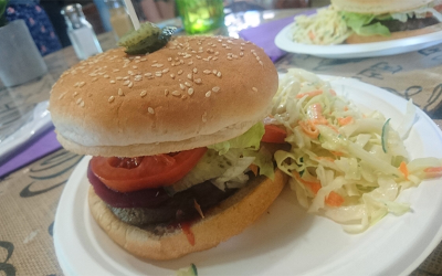 ランチ / トイレ休憩 ・ウェーブロックハンバーガー ・サラダ ・飲み物 |