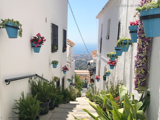 白い村ミハス・プエブロ到着 ※以下全て外観徒歩観光 ◎コンパス展望台(地中海の眺め) ◎ラ・ペーニャ聖母礼拝堂 ◎サン・セバスチャン通り ◎白壁の家が立ち並ぶ旧市街などを散策 |