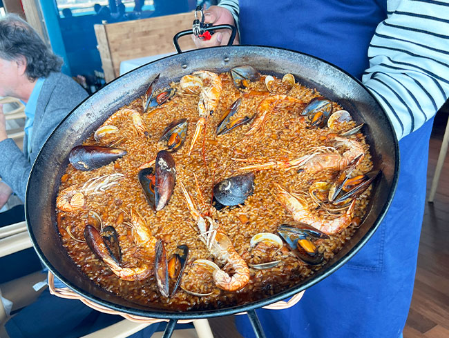 改装されて綺麗になったオリンピックポートの中でも最高のロケーションに位置し雰囲気が抜群なレストラン!バルセロナ市内でパエリアを食べるなら、味と品質、サービスともに100%お勧めのレストランです。常に新鮮な海鮮を提供するという定評が有ります。またカタルーニャに来たら食べてみてみたいものをマイバススタッフが厳選し、レストランと交渉してオリジナルメニューにしてもらいました!スペイン人のようにゆっくりと時間をかけてお召し上がりください。
