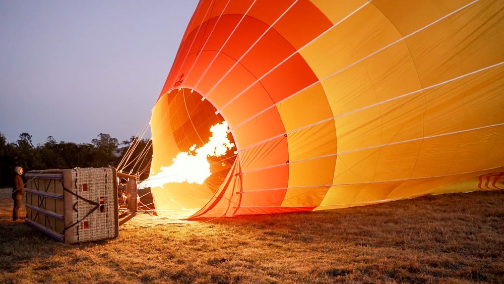 ブリスベンから車で1時間弱のネラング(Nerang)またはカナングラ(Canungra)からホットエアー社のバスで離陸地へ。 飛行地は、当社の経験豊富なパイロットが決めるその日ベストのポイントになります。 この飛行場所はブリスベンから南西に走った場所にあるヒンターランド地域で離陸場所として最適な場所です。 ネラングまたはカナングラでのお迎えの時間は、予約完了後にお伝えいたします。 飛行地に到着すると目の前には世界最大級の熱気球がどんどん膨らんでいきます! その姿はものすごく印象的で飛行前から皆さんの気持ちを高ぶらせるでしょう。気球が膨らむと10階建てのビルに相当する高さになることをご存知でしたか? |