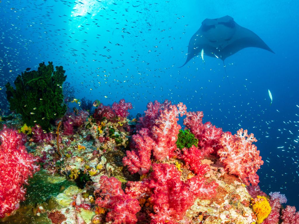 大型のマンタが群れを作って泳いでいる姿を間近で見ることができるかも!