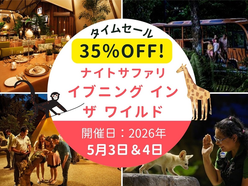 【4/22までの予約完了限定】タイムセール!5月3日&4日 40名限定!JTBゴールデンウィークスペシャル企画【ナイトサファリ・イブニング イン ザ ワイルド】