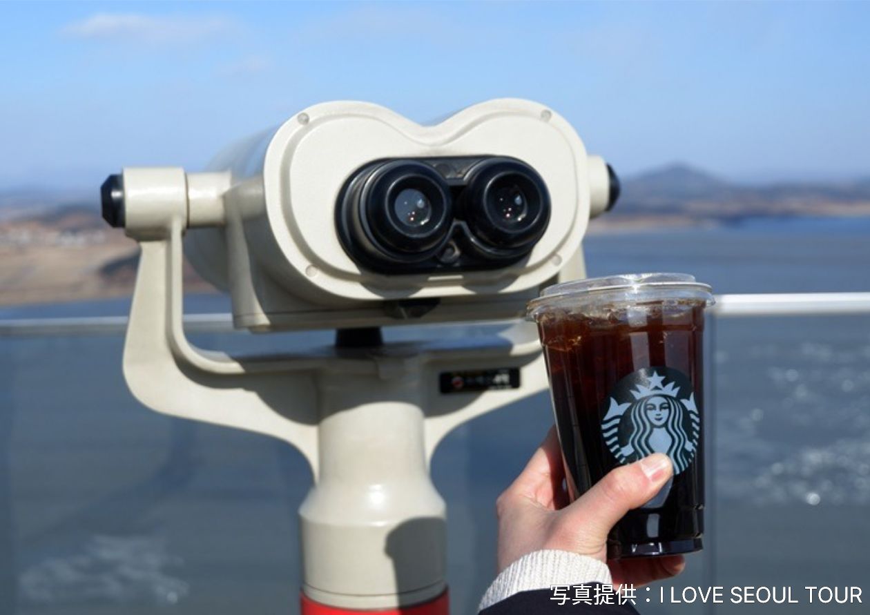 北朝鮮からわずか1.4km! DMZから一番近い統制区域にある唯一のスターバックスへご案内します!北朝鮮との関係やDMZの歴史を日本語ガイドがご案内いたします。短時間で話題のスポットを楽しみたい方におすすめです。
