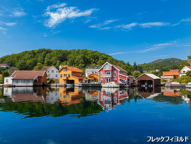 17~18世紀に建てられた白い木造家屋が並び、趣のある通りを歩くだけで歴史的な雰囲気を感じられるオランダ地区や、漁船や小型船を眺めながら、海辺の風情を堪能できる港で、フレッケフィヨルドの歴史と自然の美しさを感じることができます。