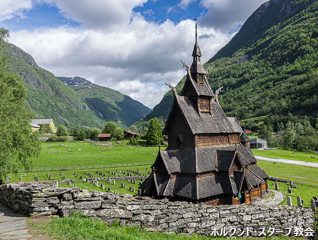 12世紀に建てられたボルグンド・スターブ教会は、ノルウェーで最も保存状態が良い中世の木造教会で、バイキング時代の影響を感じさせる装飾や、独特な尖塔が魅力です。